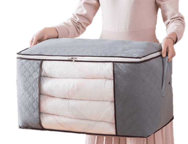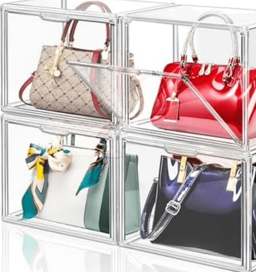 For the keepers, contain and control what’s stored there. Blankets can’t unroll or fall if you put them in bedding storage bags. For purses, I like clear bins that allow you to see the purses, yet prevent them from falling.